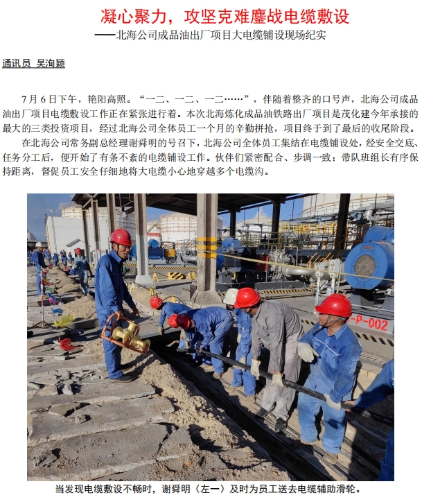 北海公司成品油出廠項(xiàng)目大電纜鋪設(shè)現(xiàn)場(chǎng)紀(jì)實(shí)