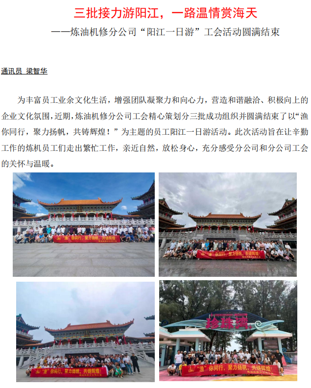 煉油機(jī)修分公司“陽(yáng)江一日游”工會(huì)活動(dòng)圓滿結(jié)束