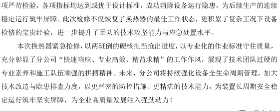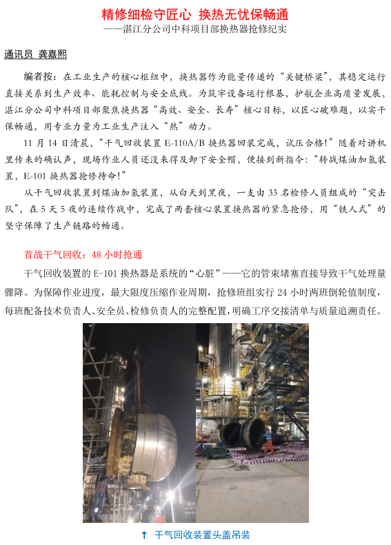 湛江分公司中科項目部換熱器搶修紀(jì)實